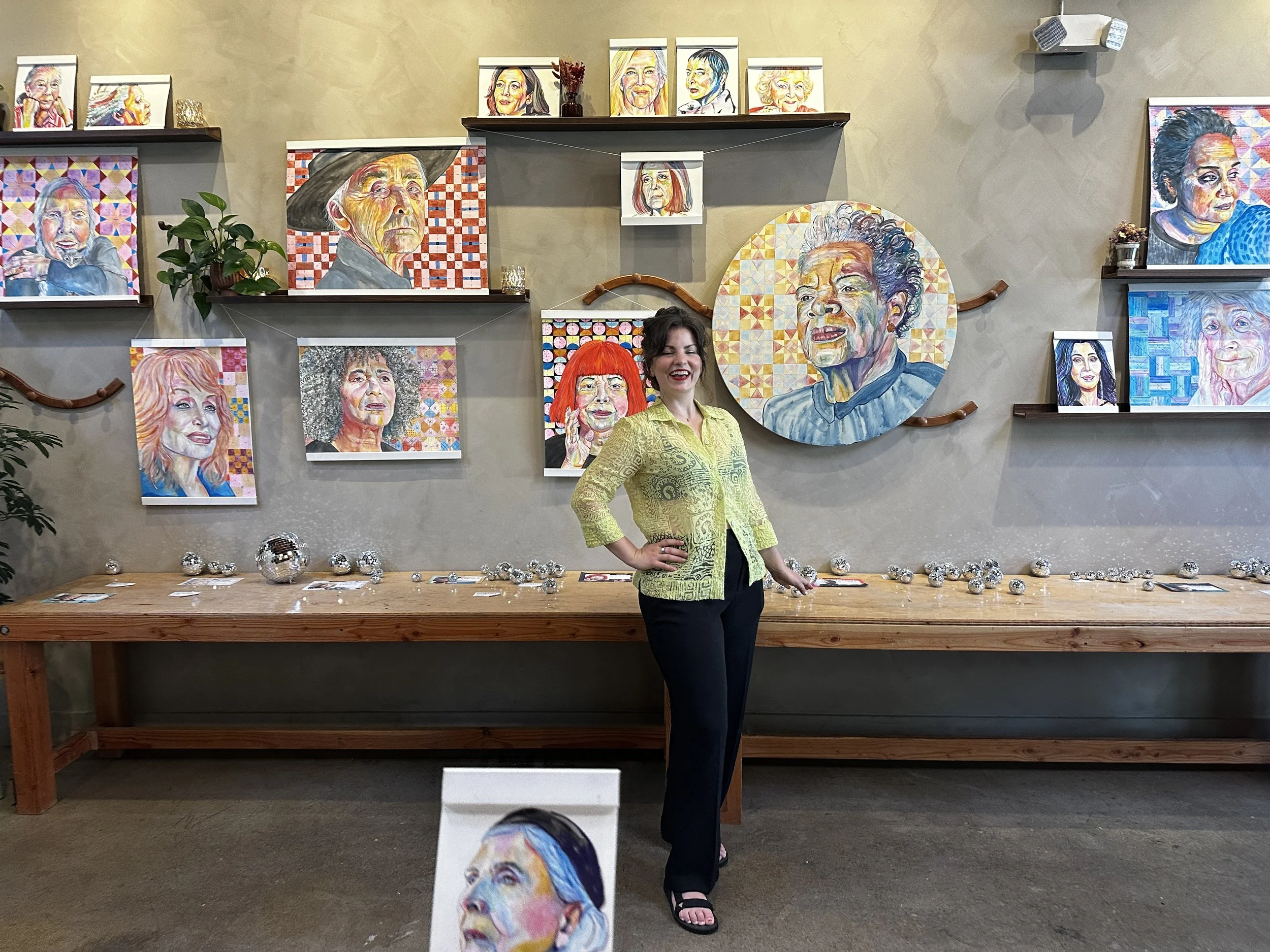 Her portraiture work is where her heart is most visible. Rebecca is drawn, in particular, to painting senior women (their skin, their texture, their earned complexity) with reverence and care. Her most recent solo exhibition, The Way She Knows, held at Forager Crafts Gallery in Los Angeles' Frogtown neighborhood, was a celebration of women over 60: visionaries, artists, and sages painted in watercolor as an act of both admiration and resistance. Rebecca sees this work as a quiet but deliberate pushback against a culture that tries to diminish women at the very moment they come into their full power.